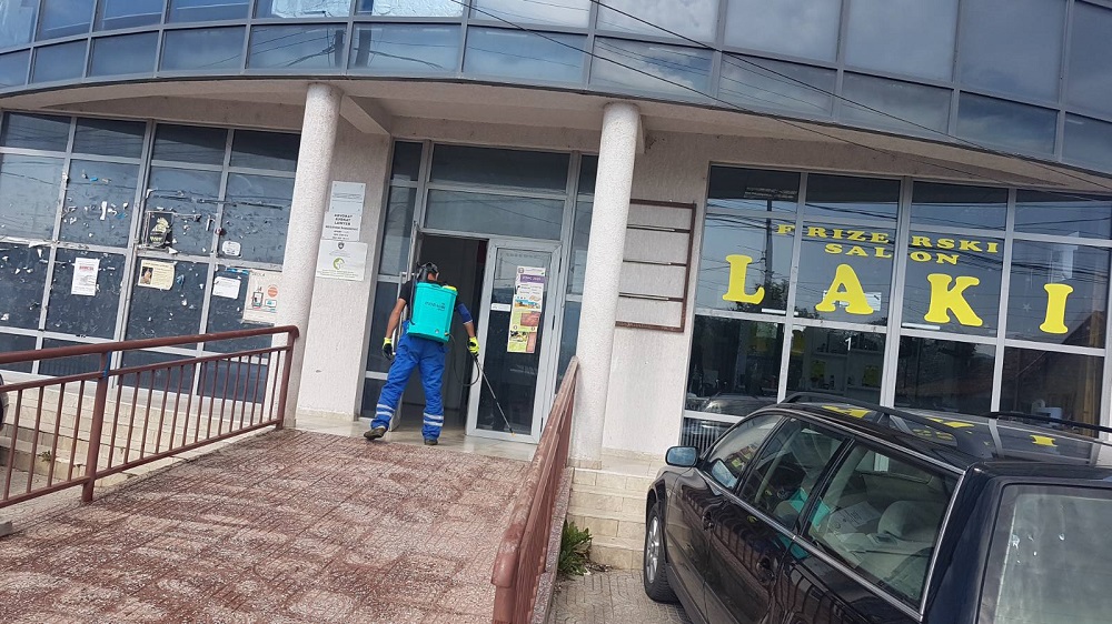 Дезинфикован је и простор око општинске зграде, а приликом уласка у зграду обавезно је ношење заштитних маски као и поштовање дистанце од два метра.