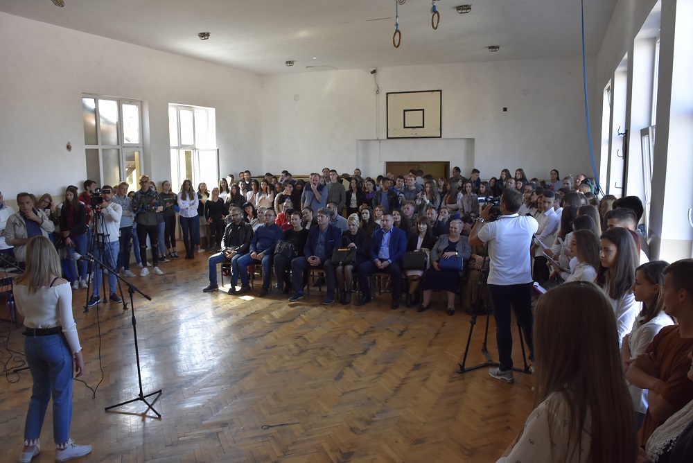 Испред Општине Грачаница били су присутни, некадашњи ђак те школе председник Срђан Поповић и директорица образовања Бранкица Нићић.