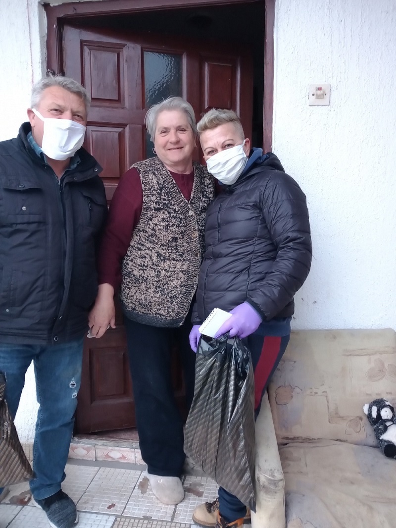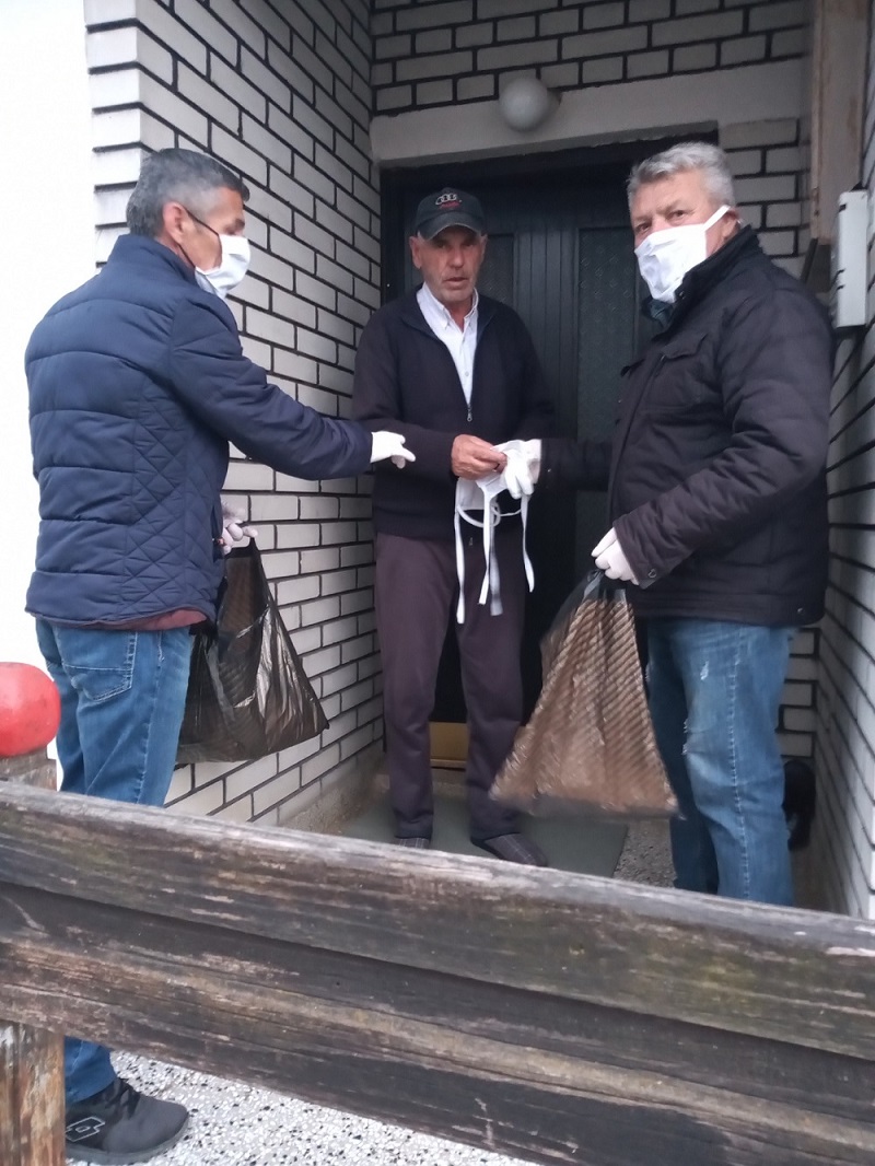 Маске праве од памучних материјала, и јутрос су их, као и по пар рукавица, делили својим мештанима.