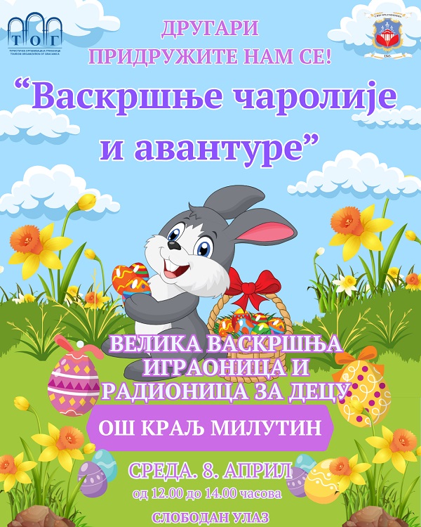 Радост окупљања поводом највећег хришћанског празника, симбола новог рођења и вечног живота, најлепше се доживљава кроз дечију искреност и осмехе. Управо зато ова манифестација ставља у фокус најмлађе, који својом радошћу и креативношћу чине свет лепшим и бољим. Манифестација „Васкршње чаролије и авантуре“ биће одржана у Основној школи „Краљ Милутин“ у Грачаници, у периоду од 12.00 до 14.00 часова. За све учеснике обезбеђен је материјал, а улаз је слободан.