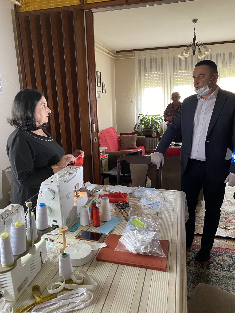 Председник општине Грачаница Срђан Поповић обишао је данас у Преоцу Надицу Јоргић која бесплатно шије заштитне маске за одбрану од корона вируса и том приликом јој се захвалио на племенитости и доприносу.