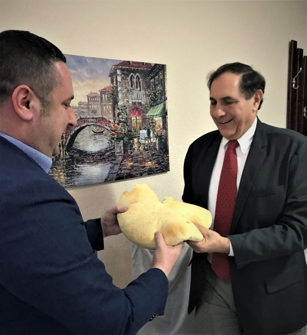 Током радног ручка, председник Поповић и заменик шефа мисије Амбасаде САД-е су изломили традиционалну косовску погачу.