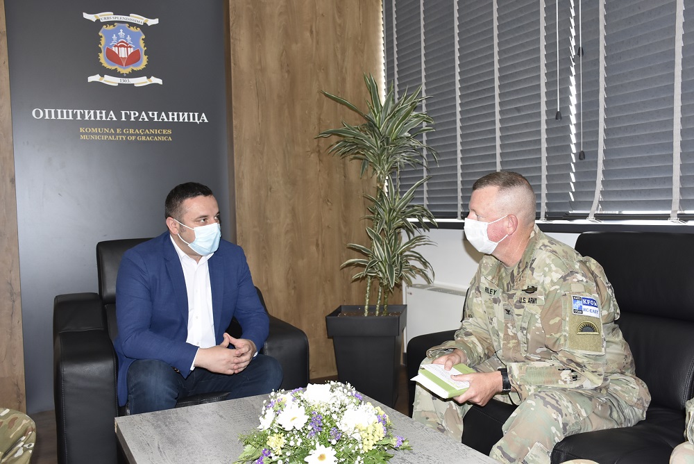 Председник општине Грачаница Срђан Поповић примио је данас команданта Регионалне команде Исток америчког пуковника Ерика Рајлија, са којим је разговарао о безбедносној ситуацији, пандемији коронавируса и наставку сарадње.