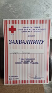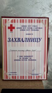 Цвејић је захвалницу уручио и Светозару Живићу секретару Црвеног крста у Грачаници.